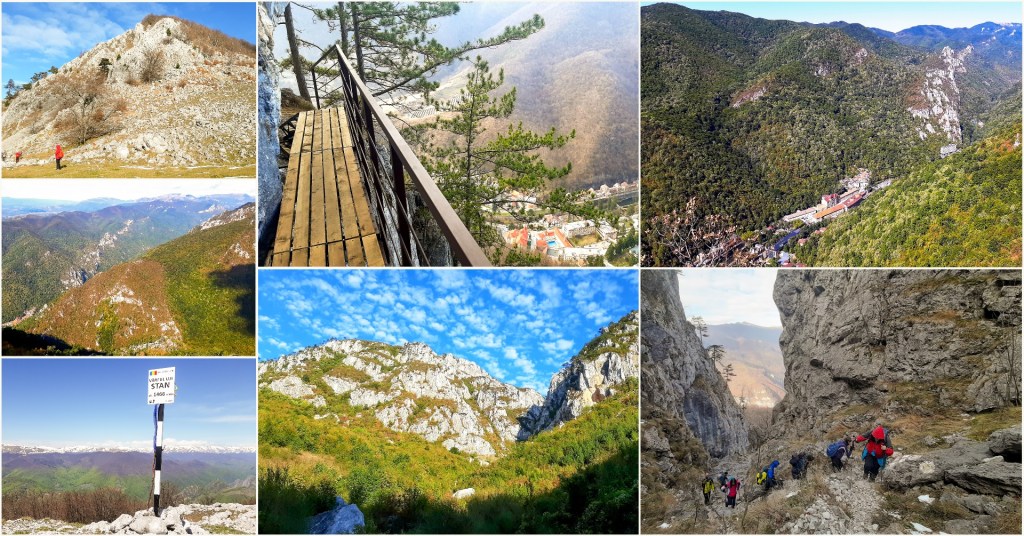 SÂMBĂTĂ, 22 octombrie 2022, nu ne urcăm deloc în autocar, ci plecăm direct din hotel pe traseu, spre Crucea Albă și Domogledul Mare, pe un traseu de Clasa B, cu durata de 6-7 ore, care se parcurge în circuit (urcare pe Cărarea Pisicii și coborâre prin Cheile Feregari). Până la Crucea Albă, traseul este de Clasa A (începători) și din acest punct oricine dorește se poate întoarce fără ghidaj, în siguranță, în stațiunea Băile Herculane pentru a petrece timp liber. Cei care alegem să continuăm vom ajunge de la cota 250 de metri (la șosea) până la peste 1100 de metri, pe culmea înaltă formată de vârfurile Domogledul Mic și Mare. De aici se văd cel mai bine Cazanele Dunării și Dunărea, dar și înălțimile cu etaj glaciar din Țarcu, Godeanu și Retezat.